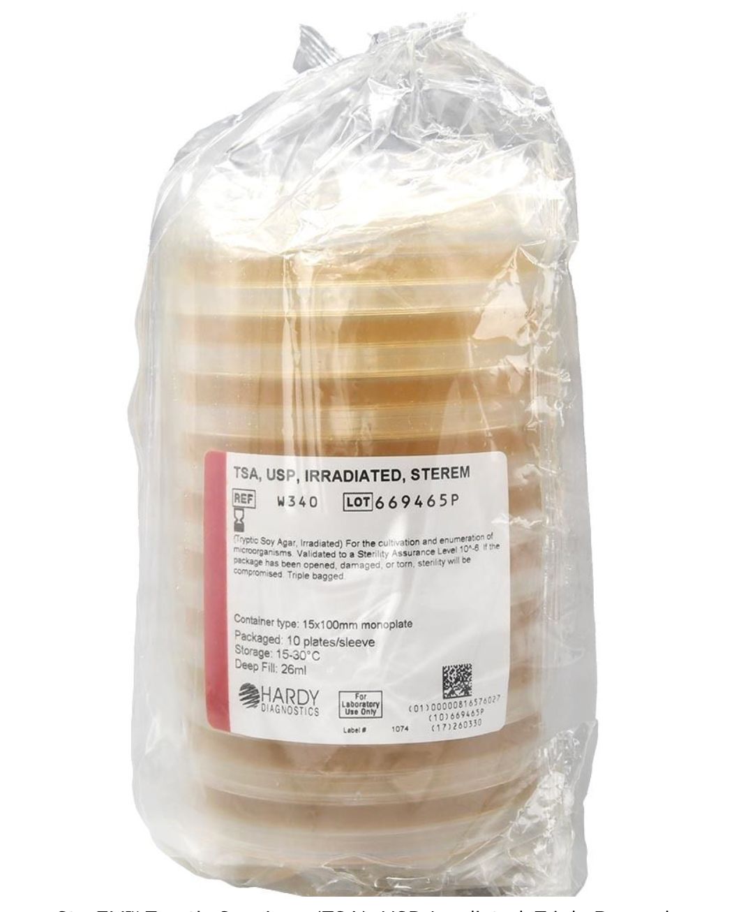 Hardy Diagnostics W340 – SterEM™ Tryptic Soy Agar (TSA), Settle Plate, Gamma Irradiated, Air Monitoring, 10 plates. CORE USP 797/800 PLATE